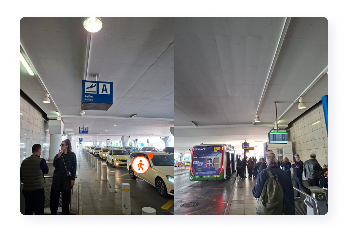 The meeting point with our Keeper at the Arrivals- Gate 1 of Athens Airport is at exit A, outside. Take the crosswalk to the second car lane.