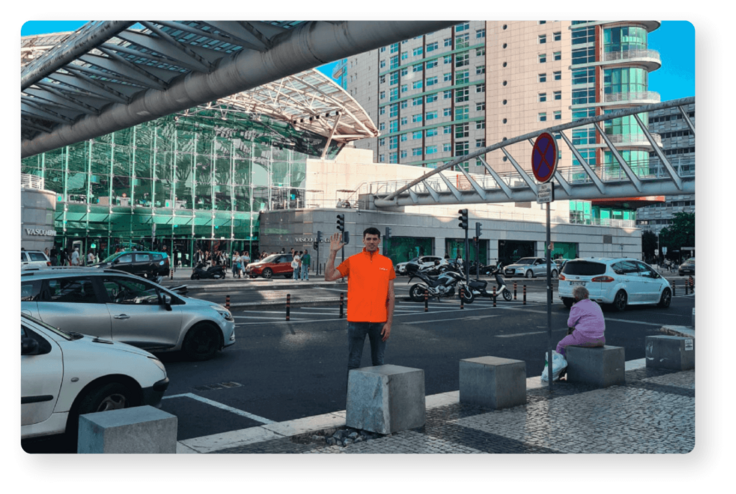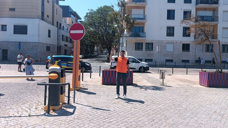 near the crosswalk, underneath the overpass between Vasco da Gama shopping