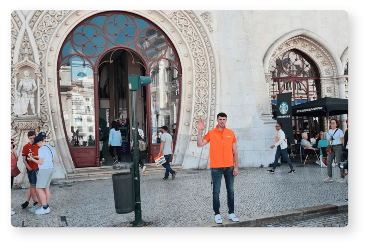 The meeting point with our Keeper at Terminal 2 of Lisbon’s airport is at the entrance, outside.